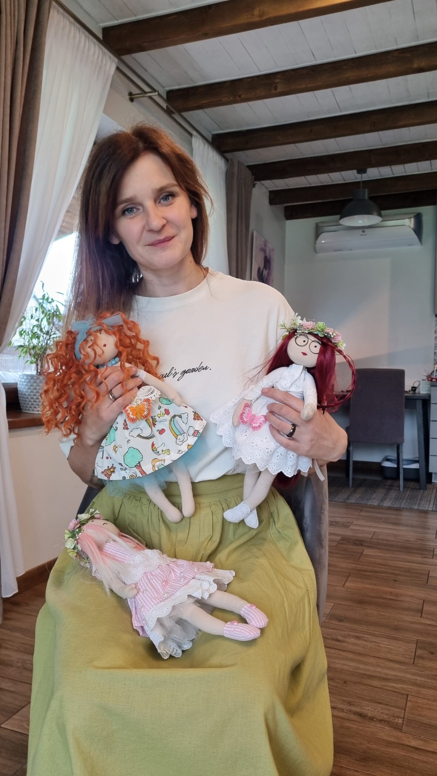– Krikštynų proga sumąsčiau dukrai padovanoti pačios siūtą lėlę. Buvo nedrąsu – nežinojau, ar pavyks. Teko daug mokytis, bet rezultatas nudžiugino. Pirmasis bandymas sužadino tikrą azartą – netrukus viena po kitos gimė vis naujos lėlės. Stengiausi, kad nebūtų vienodų – kiekviena turėjo savo vardą, charakterį, istoriją. Vienos – išgalvotos, kitos – bandymai sukurti realių žmonių atitikmenis. Viena iš įspūdingiausių – lėlė, siūta sesei: ryškūs raudoni plaukai ir dideli akiniai – tarsi jos portretas, – pasakoja Inga.
