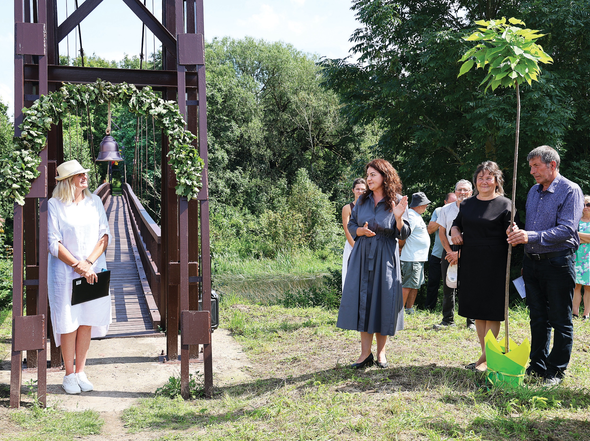 Labdaringa veikla užsiimančiai pušalotietei Romai Matuzienei Toliūnai taip pat yra ypatinga vieta. „Tai mano mamytės Emilijos Stakauskaitės tėviškė, tad dažnai čia lankausi. Nors sodybos jau nebeliko, tačiau kaskart jaučiu išskirtinę šių vietų dvasią“, – jausmingai kalbėjo pušalotietė R. Matuzienė. Ji kartu su Pušalotto seniūne Inga Jankauskaite-Ališauske padovanojo neįprastą ir retą dovaną – katalpos medelį. Šis derlingą dirvožemį ir saulėtą vietą mėgstantis augalas pasižymi plačia laja ir dideliais, žaliais, širdies formos lapais. Katalpa žydi baltai liepos ir rugpjūčio mėnesiais. Po tilto atidarymo ceremonijos neįprastam medeliui buvo surasta tinkama vieta.